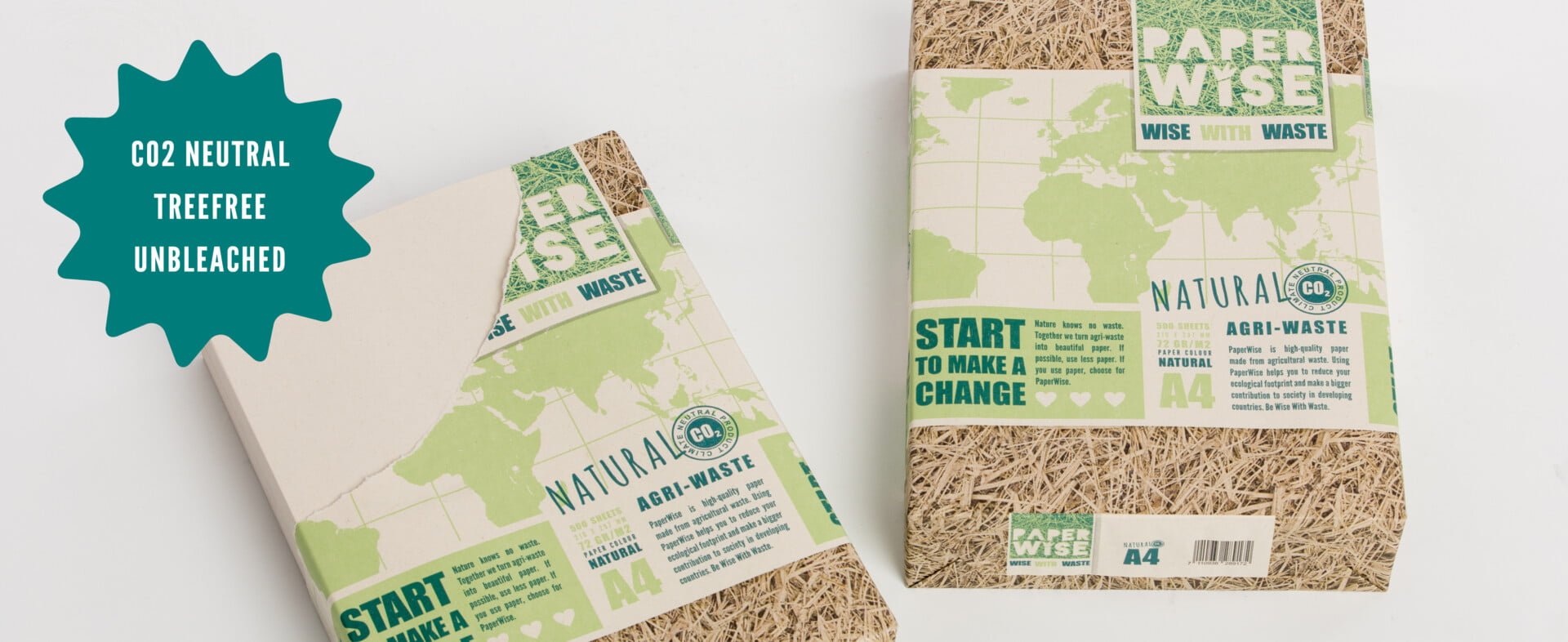 Wenn Sie sich für PaperWise entscheiden, tragen Sie nicht nur zu einem zusätzlichen Einkommen für die Landwirte in den Entwicklungsländern bei, sondern auch zu sauberer Luft, da keine landwirtschaftlichen Abfälle mehr auf dem Land verbrannt werden müssen. Das ungebleichte PaperWise Natural Papier hat eine hellbraune Farbe, die ihm ein nachhaltiges Aussehen verleiht. Die Texte sind sehr angenehm und ruhig zu lesen. Das PaperWise Natural 72-Gramm-Kopierpapier fühlt sich genauso fest an wie gebleichtes weißes 80-Gramm-Papier aus Bäumen, ist aber 10% leichter, ein weiterer Vorteil des ungebleichten Papiers. Die Verpackung des PaperWise Natural Kopierpapiers besteht aus demselben Material, womit die Nachhaltigkeit vollständig umgesetzt wird. Ein weiteres Novum sind die praktischen, ausgeschnittenen Griffe in der Verpackung, die das Anheben und Tragen des Papiers erheblich erleichtern.